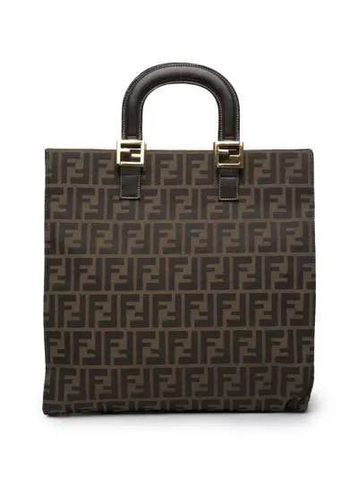 canvas body flat leather top handles open top with magnetic snap closure interior zip pocket brown This item has no inclusions. Condition: GOOD. This previously owned and used item is in good condition with minimal signs of use. This may include fading of material or plating and scratches. Please refer to the photos on this product page for a detailed view of the item, including any damages declared.