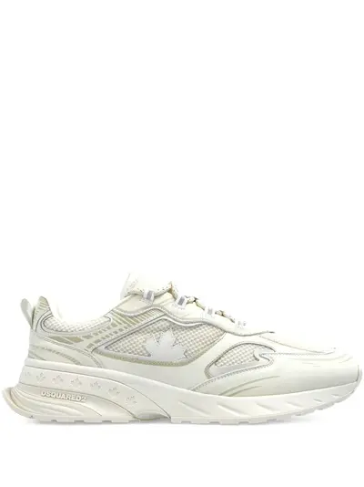 white panelled design logo patch mesh detailing lace-up fastening chunky rubber sole pull-tab at the heel round toe