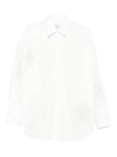 white crystal embellishment point collar long sleeves button fastening cuff detail