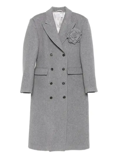 grey floral appliqué double-breasted notched lapels button fastening flap pockets