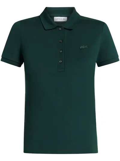 forest green organic cotton appliqué logo polo collar front button placket short sleeves straight hem
