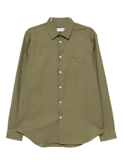 olive green front button fastening logo patch at the chest chest patch pocket buttoned cuffs