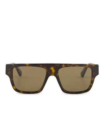 brown tortoiseshell pattern square frame tinted lenses logo detail These glasses come with a protective case.