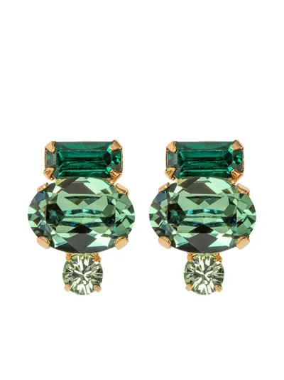 gold rectangle embellishment oval embellishment post-back fastening These earrings come as a pair. Normal everyday use and external agents may reduce the lustre of gemstones and gold surfaces. To maintain, use specific, non-abrasive products specially meant for cleaning jewellery.
