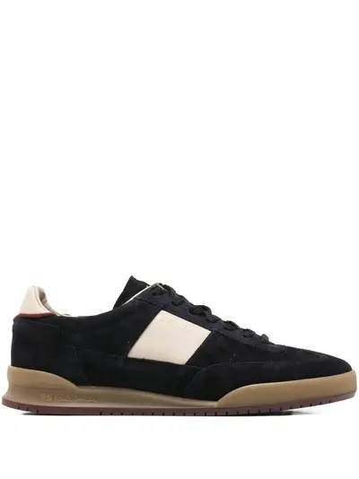 blue calf suede panelled design lace-up fastening flat rubber sole