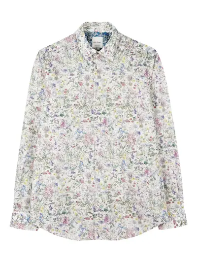 off-white long sleeves floral print front button fastening butoned cuffs classic collar