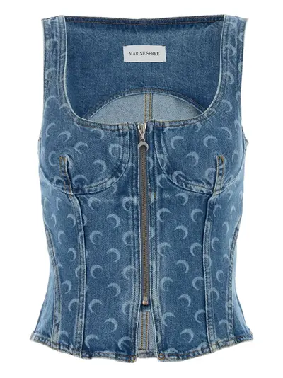 light blue signature all-over moon-print zip fastening sleeveless square neck