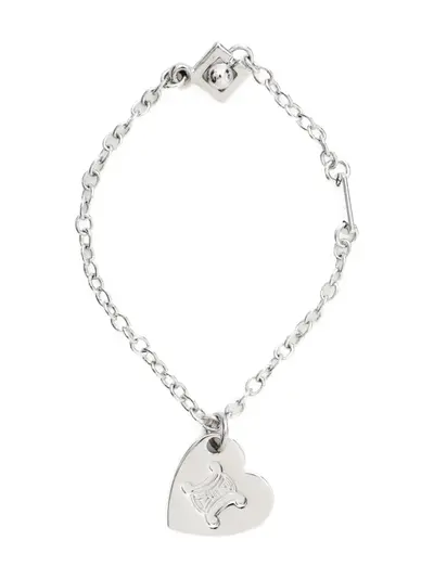 2000s silver-tone heart pendant Triomphe motif square detail toggle fastening