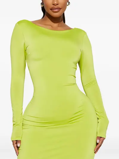 green boat neck open back long sleeves