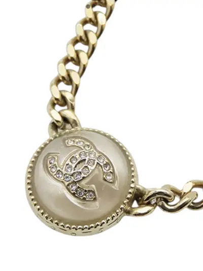gold plated body resin with CC rhinestones pendant lobster clasp closure gold Serial Number: A22C This item has no inclusions. Condition: GOOD. This previously owned and used item is in good condition with minimal signs of use. This may include fading of material or plating and scratches. Due to the exclusivity of this item and its limited availability, processing and delivery might take longer than usual. Please refer to the photos on this product page for a detailed view of the item, including any damages declared.