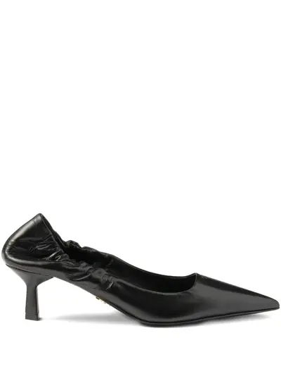 Prada 55mm ruched-effect pointed-toe leather pumps 32122343 (lpn31054899)