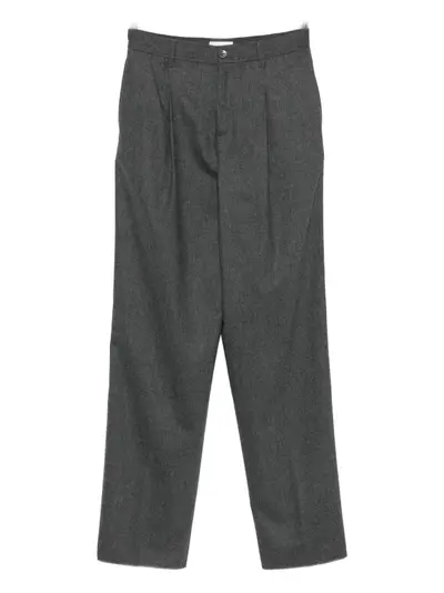 ash grey pleated front belt loops button fastening concealed fly straight leg