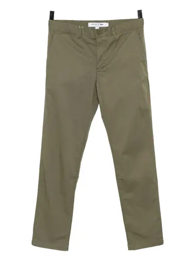 khaki green button fly fastening belt loops two side slash pockets two rear button-fastening pockets