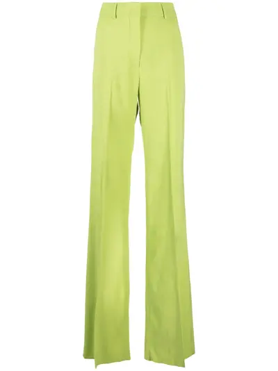 lime green concealed front button fastening concealed front zip fastening belt loops wide leg straight leg