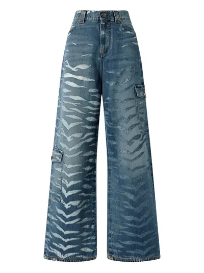 light blue zebra print distressed effect cargo pockets high waist button fly