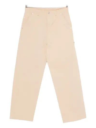 beige stretch-cotton concealed fly and button fastening belt loops side pockets straight leg