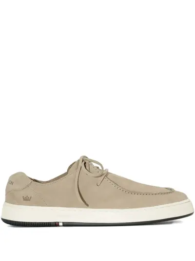 beige suede upper lace-up fastening round toe flat sole stitching detail