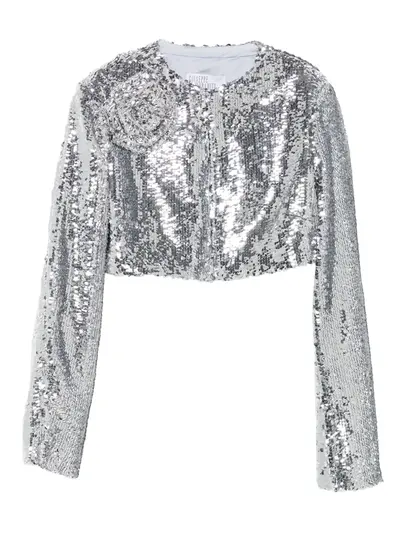 silver-tone sequin embellishment rose detail long sleeves cropped length zip front fastening
