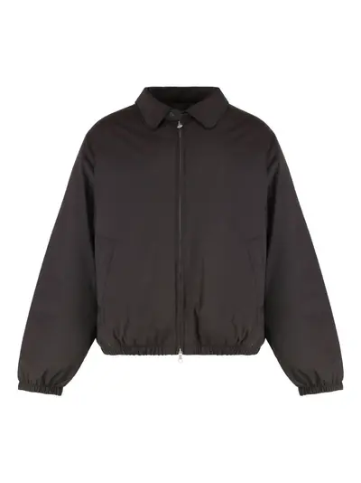 brown striped zip fastening elasticated hem classic collar long sleeves