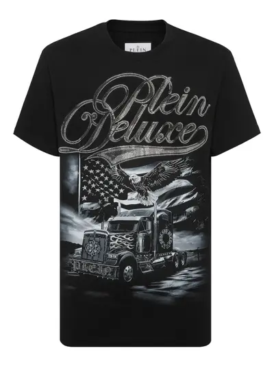black eagle and truck graphic logo lettering crew neck short sleeves