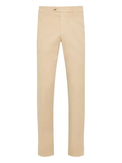 beige belt loops button fastening rear jetted pockets side seam pockets