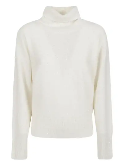 white sequin embellished roll neck long sleeves ribbed hem ribbed cuffs
