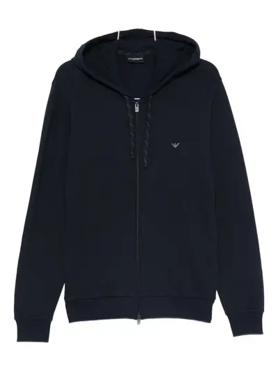 blue logo detail front zip fastening classic hood long sleeves ribbed hem