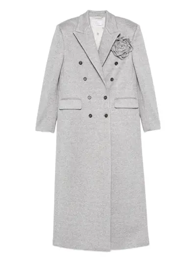 grey rose embellishment double-breasted button fastening front flap pockets long sleeves