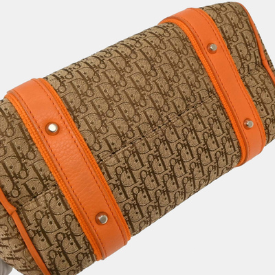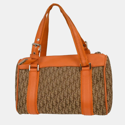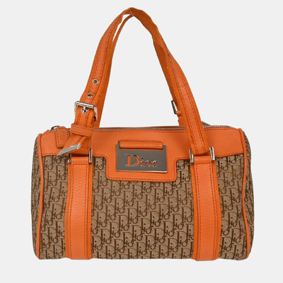This Christian Dior handbag features the classic beige Trotter monogram canvas with leather trim. The compact size and structured shape make it a practical everyday choice while still showing off the iconic Dior pattern. A great addition to any vintage Dior collection.