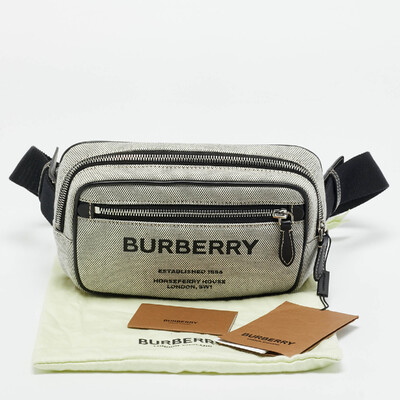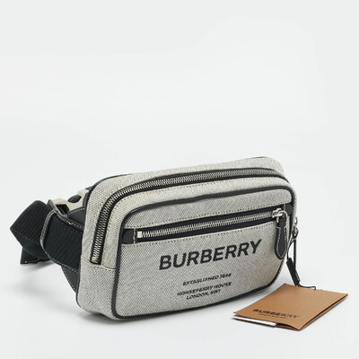 Designed for hands free ease, the Burberry West Belt Bag blends practicality with modern style. Crafted from grey canvas with black leather trims, it features the house’s signature detailing and a compact, functional shape. Perfect for travel or everyday wear, it brings a luxe edge to street ready utility.