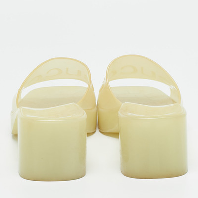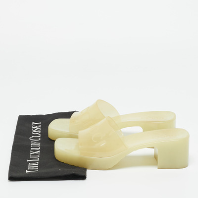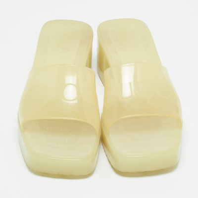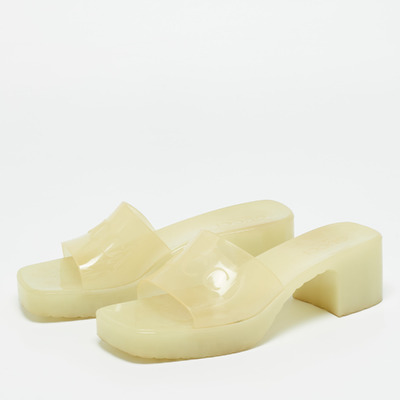 A nod to Gucci’s offbeat spirit, these transparent rubber slides bring a carefree edge to warm weather dressing. Their clear finish and signature branding keep the look clean, modern, and unmistakably Gucci.