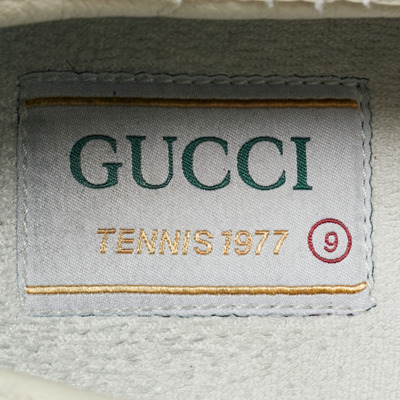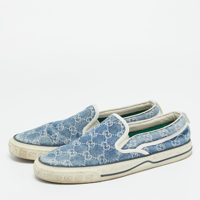 Gucci’s Tennis 1977 sneakers come in soft blue GG jacquard denim, the monogram pattern shifting gently across the upper. A durable white rubber sole anchors the design, carrying the rhythm of sunlit streets and casual afternoons.