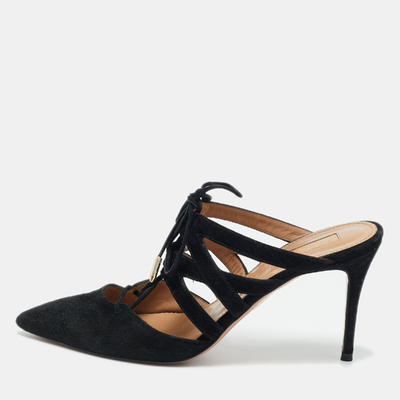 Aquazzura Black Suede Belgravia Mules Size 36 1229079 (чёрный, lpn31057010)