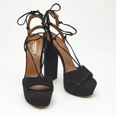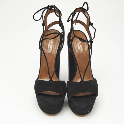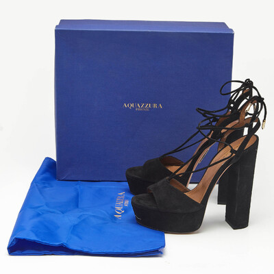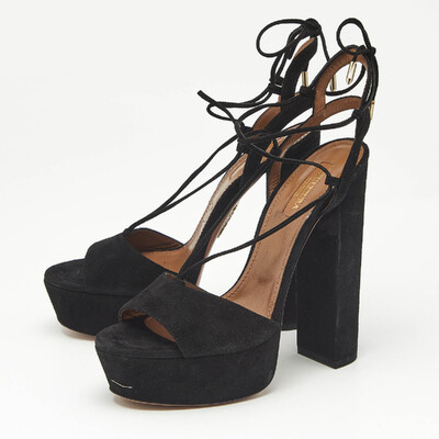 Aquazzura Black Suede Austin Plateau Platform Sandals Size 37 1228798 (чёрный, lpn31057087)