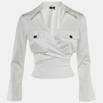Elisabetta Franchi White Cotton Wrap Around Top S 1228272 - 1