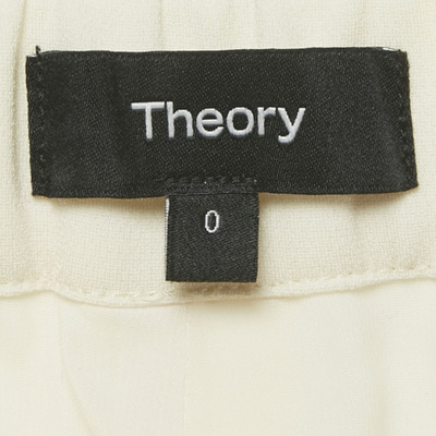 Sleek and sophisticated, these Theory trousers are tailored from fluid cream crepe in a straight leg silhouette. Their minimalist design ensures timeless versatility, perfect for both office wear and elegant evenings. A wardrobe essential for effortless refinement.