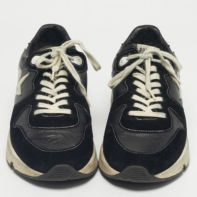 Golden Goose redefines casual luxury with these running sneakers, meticulously finished for their signature worn in appeal. The black and white leather mix channels vintage athleticism while maintaining effortless sophistication.