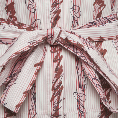 Burberry reinterprets its tailored heritage with this pink cotton shirt dress adorned with hand drawn scribble prints. The belted waist accentuates structure, while the relaxed cut ensures ease of wear. Playful yet polished, it nods to the house’s creative evolution under Riccardo Tisci. Style it with sneakers for day or heels for a modern city look infused with British charm.