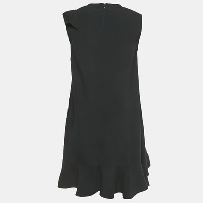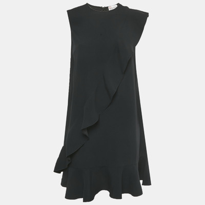 RED Valentino balances whimsy with structure in this black crepe mini dress. The flounced hem adds movement and feminine charm, while the clean bodice offers subtle contrast. Crafted with precision seams and a soft lining, it flatters effortlessly. Pair it with ankle boots for day or pointed pumps for evening — a perfect expression of youthful Italian elegance with refined edge.