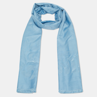 Lanvin’s Blue Island scarf is a testament to the house’s understated Parisian elegance. The tonal jacquard weave subtly reveals the logo pattern across lustrous silk, creating a fluid interplay of texture and light. Its airy construction and soft drape make it a perfect finishing touch for polished daywear or evening refinement.