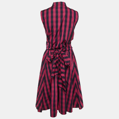 Ch Carolina Herrera Pink Striped Cotton Waist Tie Detail Midi Dress M 1228287 - 1