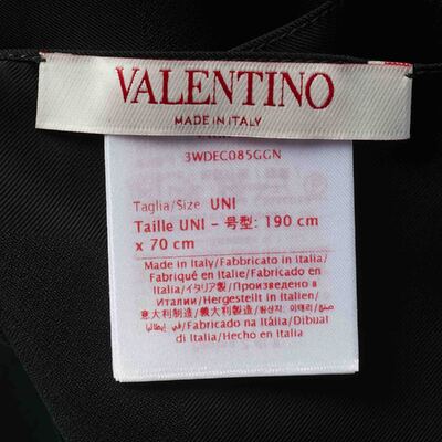 Understated yet instantly recognizable, this Valentino silk scarf is a study in modern refinement. Crafted in pure silk, it bears the maison’s logo motif in tonal detailing that catches the light with quiet sophistication. Its fluid texture drapes effortlessly — a versatile accent for tailoring, eveningwear, or knotted around the handle of a favorite bag.