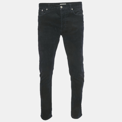 Dior lends opulent texture to classic denim with these slim fit jeans in deep velvet. The tonal logo embroidery adds an emblematic touch, while the sleek silhouette sculpts the frame with couture precision. A statement in refined minimalism, they transition effortlessly from day to evening. Pair with an ivory blouse or cropped jacket for a sophisticated look infused with Parisian edge.