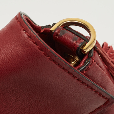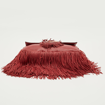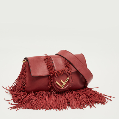 Fendi’s creativity shines through this reimagined Baguette, designed in bold red leather with cascading fringes. The F is Fendi logo detail adds instant recognition, while the playful texture injects movement and dynamism. A contemporary take on one of the maison’s most iconic silhouettes, it brings artful charm to both casual and evening wardrobes.