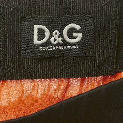 D and G’s mastery of exuberant femininity shines in this orange silk mini skirt, defined by cascading ruffled tiers. The lustrous fabric moves with lively grace, while the vivid hue evokes the warmth of Sicilian summers. Light and flirtatious, it can be styled with a fitted blouse or lace camisole for an effortlessly romantic ensemble. A vibrant expression of the maison’s playful Italian elegance.