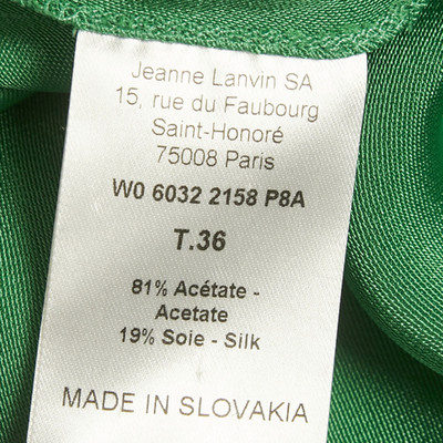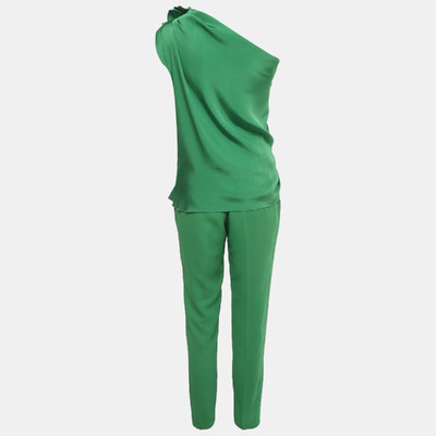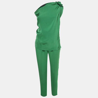 Lanvin redefines ease with precision. Crafted in fluid green crepe, this coordinated set drapes beautifully in a one shoulder top and tapered pants. Tuck the top in and add a slim belt and pumps for formal settings.