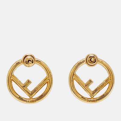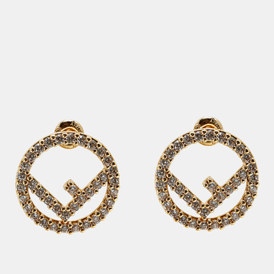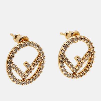 Fendi’s stud earrings are crafted in gold tone and embellished with crystals, designed around the F is Fendi motif. Compact yet striking, they offer versatile styling while capturing the maison’s iconic codes.