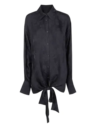black jacquard front button fastening tie detail long sleeves buttoned cuffs