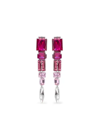 pink ombré crystal embellishment drop design square crystals rectangular crystals metal construction These earrings come as a pair.