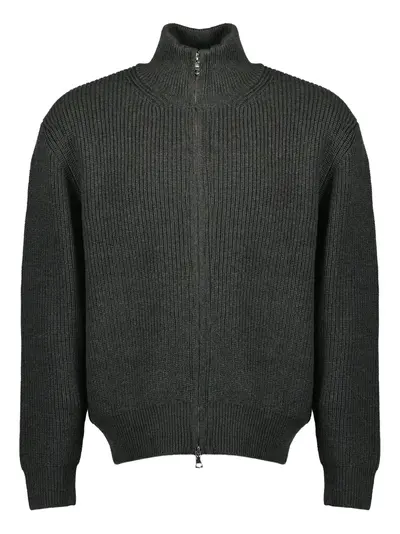 grey ribbed knit high neck long sleeves two-way zip fastening logo detail